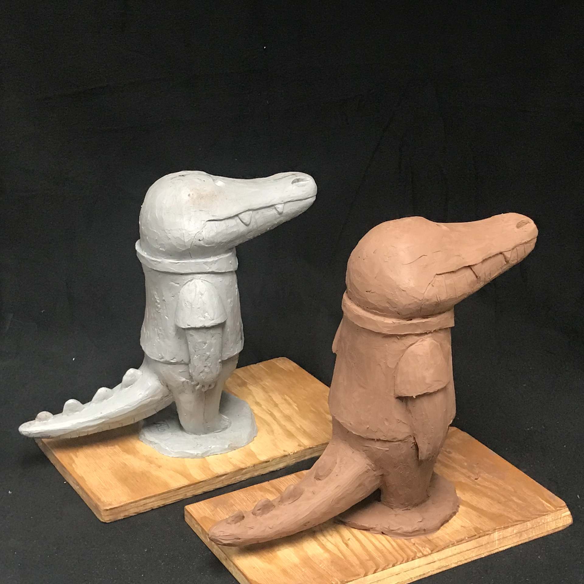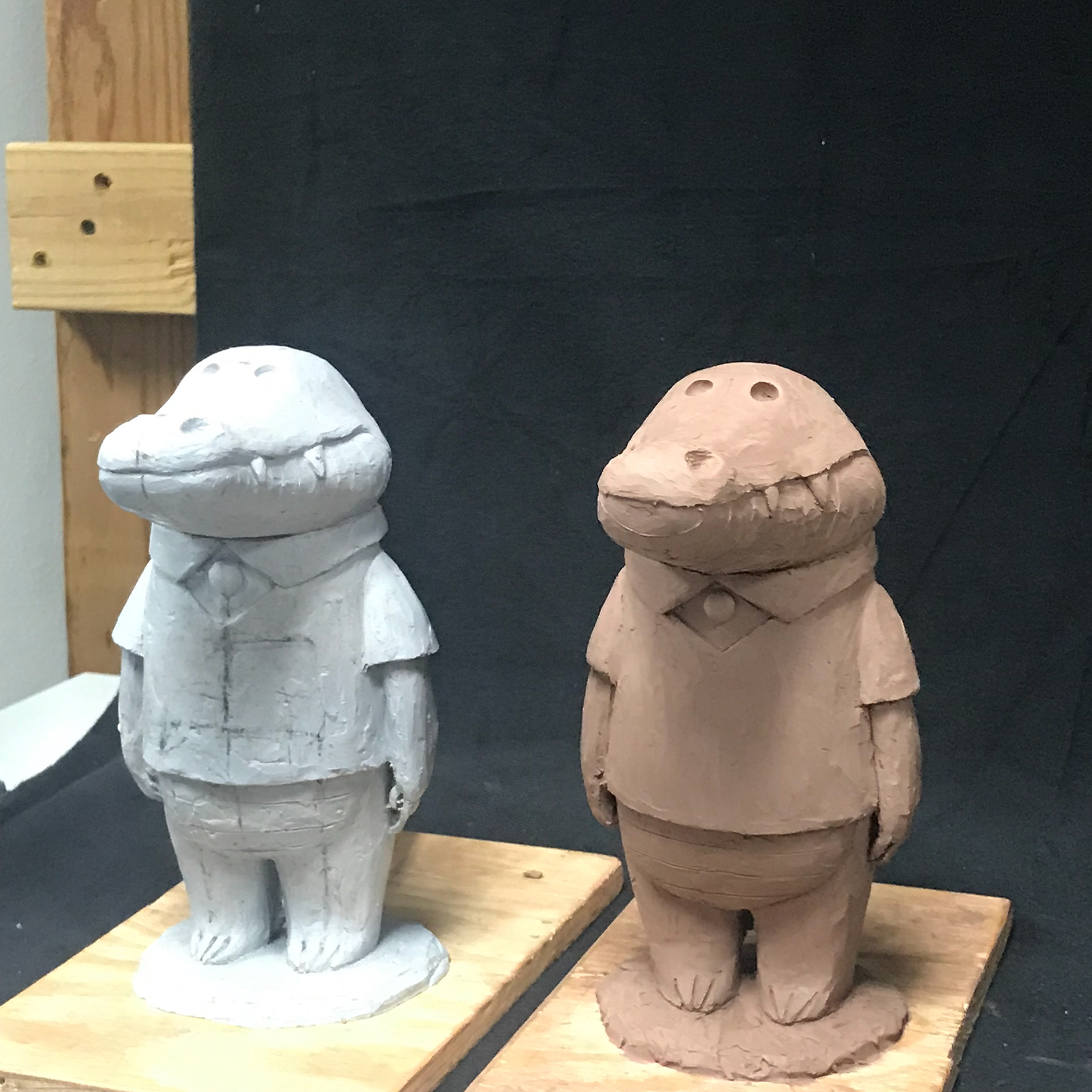 Original cast (in grey) of Andrea Blasich maquette for Tonko House "The Dam Keeper". Taking Andrea's original sculpt and recreating it. Modeled in oil clay and molded in a blanket pour mold fashion.