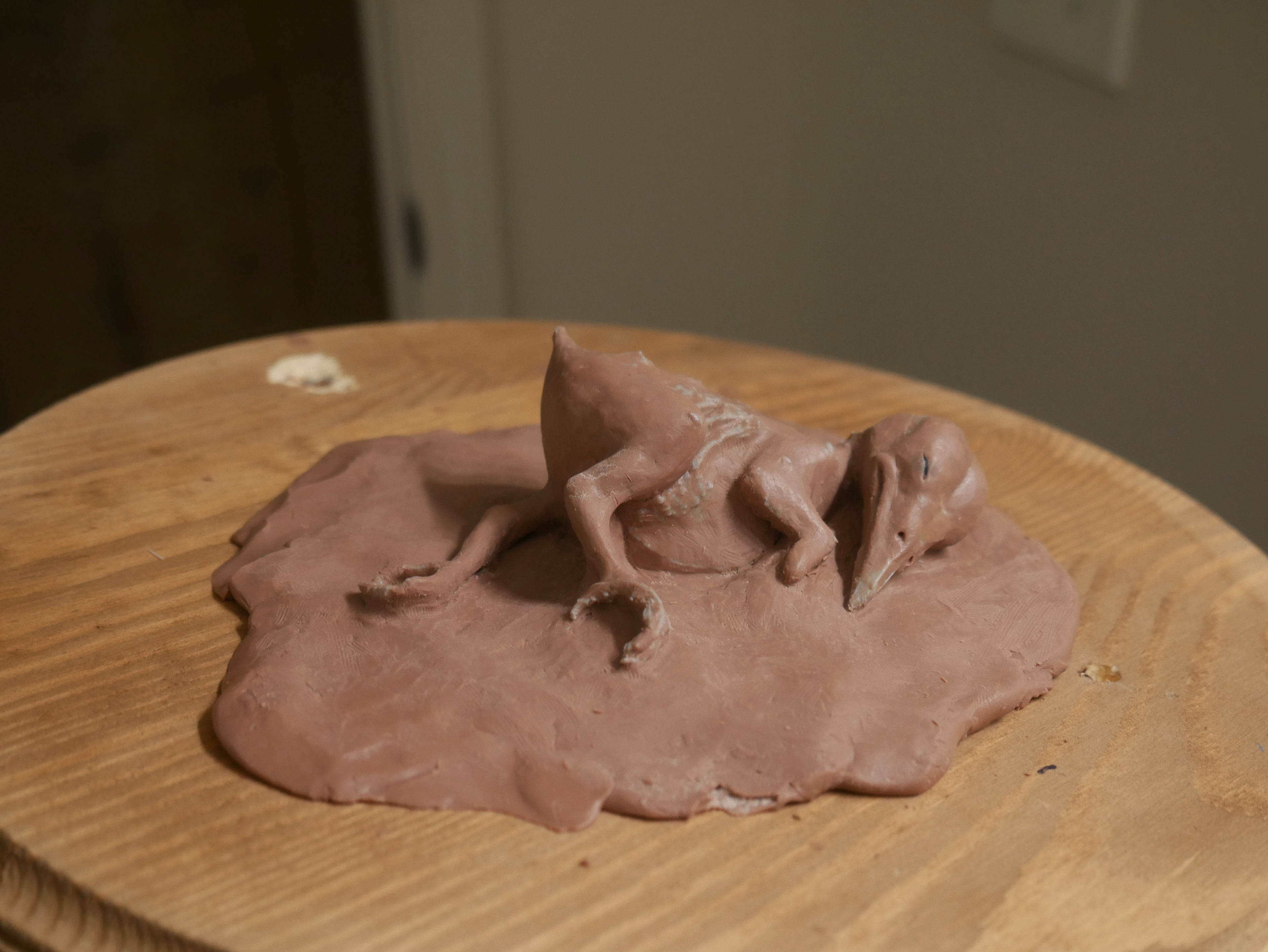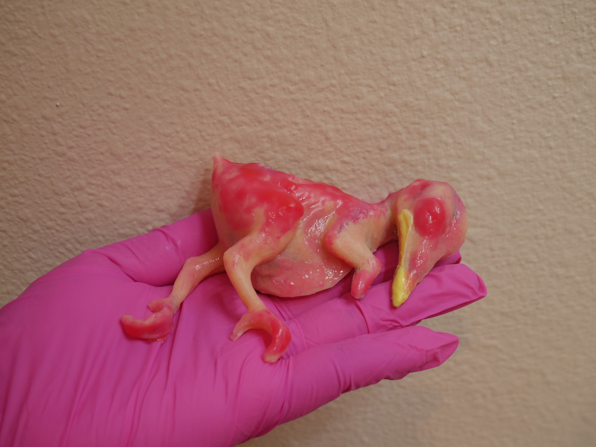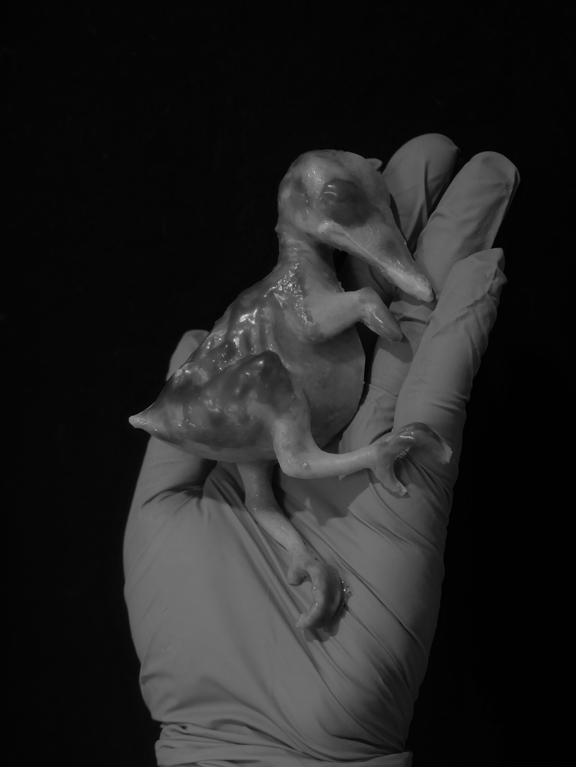 I used Dragon Skin and platinum-cure silicones with plaster shell to fabricate a prop. I 3D printed a skeletal armature of a bird I purchased online which served as an anatomical structure for the clay sculpt. Because the film is shot in black and white prop was tinted in layers to ensure proper tonal contrast on camera.